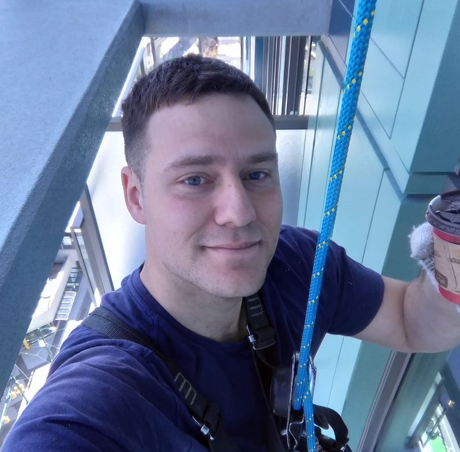 Chris Heine is a Vancouver window cleaning pro! He’s been working as a SPRAT certified rope access cleaning technician for over 10 years now. No job is too challenging for Chris. He is a strong leader and can manage complicated set-ups with our window cleaning crews. Safety is the primary focus, so we are always confident that everyone is in a healthy working environment. Chris also is excellent at customer care, where he puts himself in the customer’s shoes in order understand the unique needs. He is crystal clear when it comes to cleaning windows, cutting out grease and grime no matter the height! Chris offers other services beyond our company: Exterior high rise painting and sealing, Dryer vent cleaning, Concrete repair on vertical surfaces, Glazing, Industrial, commercial, and residential access renovations, Emergency rescue services, and Access Consultations. www.heinstrung.com